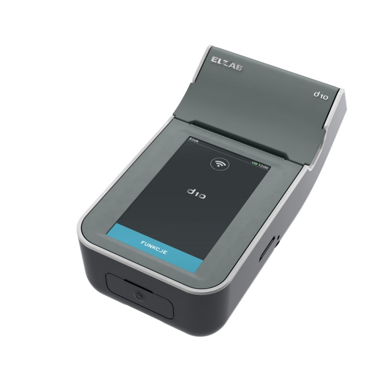 Drukarka fiskalna ELZAB D10 to drukarka z elektronicznym zapisem kopii paragonów. Dedykowana jest do małych i średnich punktów sprzedaży. Dzięki wydajnemu akumulatorowi i możliwości komunikacji za pośrednictwem WiFi nieoceniona jako element mobilnego stanowiska sprzedaży. Drukarka posiada funkcje informujące użytkownika o konieczności wykonania raportu dobowego oraz raportu miesięcznego za miesiąc poprzedni.